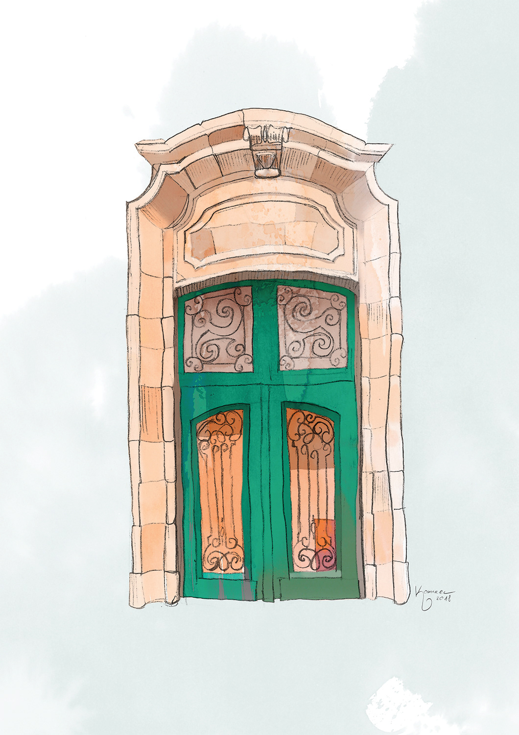 Drzwi do kamienicy w Brukseli, które narysowałem w swoim szkicowniku na wakacjach